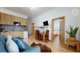 DISPOZÍCIA: Je kompletne zrekonštruovaný a zariadený veľmi vkusným nábytkom na mieru. Byt je vhodný pre 4 +1osoby. Disponuje kompletne vybavenou kuchyňou s mikrovlnnou rúrou, priestorom na posedenie s pohovkou a TV s plochou obrazovkou a súkromnou kúpeľňou so sprchovacím kútom. K....