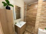 V kuchyni je kuchynská linka vybavená el. varnou doskou, el. rúrou, chladničkou a mikrovlnkou. Obývačka je kompletne zariadená sedačkou, tv skrinkami, stolom so stoličkami, Kútom s posteľou a veľkou skriňou. Kúpeľňa je vybavená skrinkami, umývadlom, sprchovým kútom a práčkou. Na chodbe....
