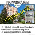 Na dlhodobý prenájom zrekonštruovaný a zariadený 3-izbový byt v podkroví rodinného domu v OV v centre mesta Levoča, ul. Kláštorská. Byt, s podlahovou plochou 73 m², je situovaný na 2 NP rodinného domu so samostatným vstupom a orientáciou na SZ/JV.DISPOZÍCIA:Vstupná chodba so vstavanou....