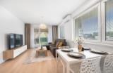 Dispozičné riešenie a vybavenie Podlahová plocha bytu je 65,86 m² a k nej sa pridáva takmer 12 m² terasa. Byt je dokončený v nadštandardnom prevedení – kuchynská linka značky DanKüchen so vstavanými spotrebičmi (umývačka riadu Bosch, chladnička s mrazničkou, varná doska, nová mikrovlnná....