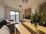 Dispozícia bytu: • priestranná obývacia izba s knižnicou • samostatná izba (pracovňa/detská izba) • spálňa prepojená s kúpeľňou • kuchyňa (americká chladnička, umývačka, práčka) s jedálenským kútom • kúpeľňa s vaňou aj sprchovým kútom • balkón Byt je zariadený kvalitným nábytkom a....