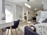 Pozostáva z predsiene, priestrannej izby s kuchynským kútom, vľavo od vchodu je situovaná kúpeľňa s WC. Garsónka prešla kompletnou rekonštrukciou podláh, stien, elektriny, okien i bytového jadra. Je vybavená kuchynskou linkou, barovým pultom so stoličkami, sektorovým nábytkom. Výborná....